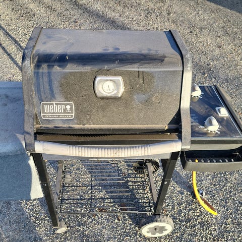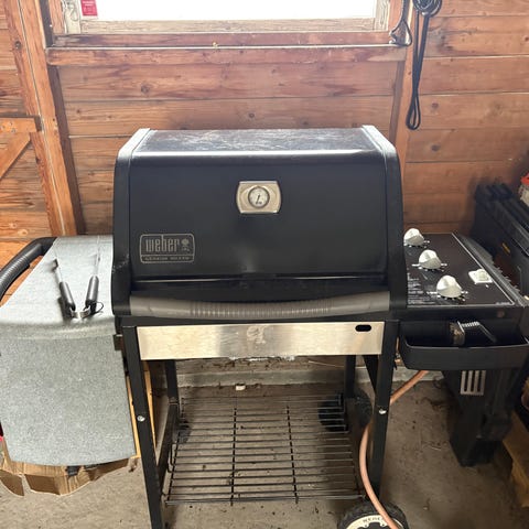 Jamie Oliver gassgrill med to brennere, termometer på lokk, og grillrist i støpejern. Leveres med vogn for enkel mobilitet, slanke og tank hører ikke med. Egnet for utendørs matlaging.