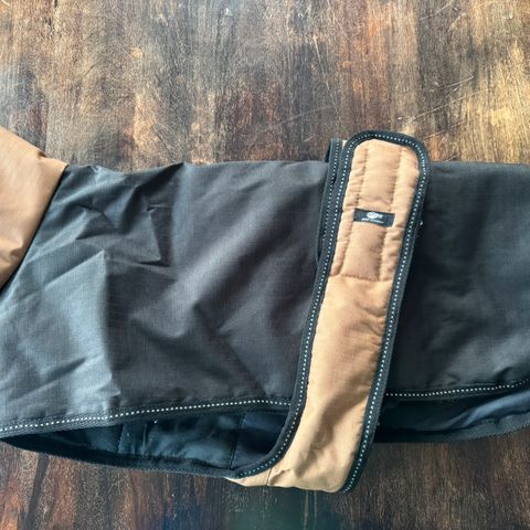 Hurtta vinterdekken til hund i svart farge. Dekket er foret med et mykt, isolerende materiale som gir varme. Passer til bruk i kaldt vær for å holde hunden varm.