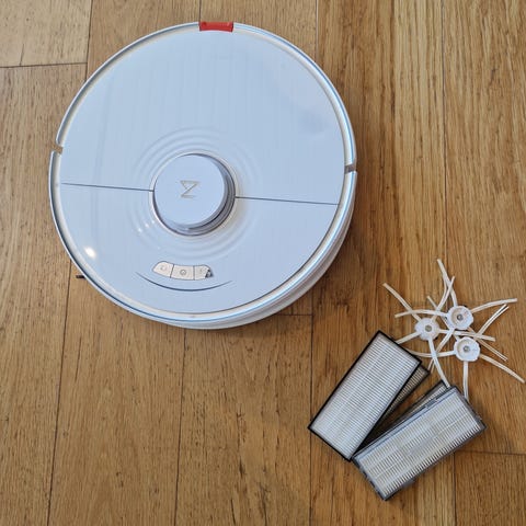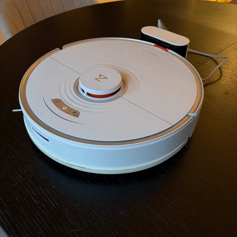 Roborock robotstøvsuger i hvit farge. Designet for automatisert rengjøring av gulvflater.