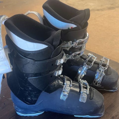 Head skistøvler i størrelse 210-215 cm med fargene hvit og svart. Skistøvlene har justerbare spenner og er designet for å gi støtte og komfort ved skiaktiviteter.