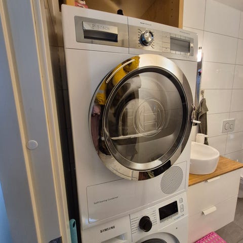 Bosch Serie 4 frontmatet vaskemaskin og tørketrommel med EcoSilence Drive teknologi. Maskinen har en brukervennlig kontrollpanel og er designet for effektiv klesvask. Disse fungerer som de skal og er pent brukt!