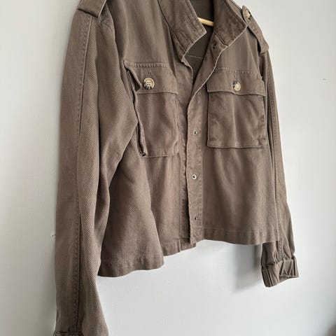 Fin jakke i str L selges. Den har belte og flere frontlommer. Normal i str. Ingen skader eller bruksmerker. Kan sendes mot porto.