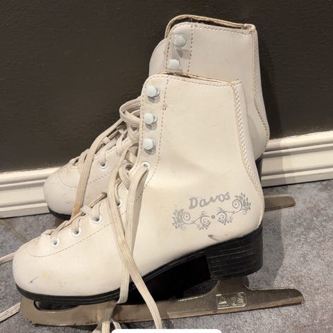 Davos skøyter for barn i størrelse 34. Skøytene er hvite.