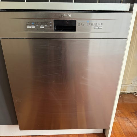 Gram Underbygd oppvaskmaskin i rustfritt stål som fulgte med boligen vår ved kjøp - usikker når den er fra men det er opplyst i salgsoppgaven at kjøkkenet ble pusset opp i 2021.