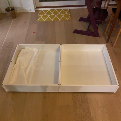 Selger 1 stk skuff på hjul i tre, som passer til minitude-seng fra Jollyroom. Kjøpte 2, da jeg trodde det passet med 2 stk under juniorsengen. Det gjorde det ikke.. Den er nærmest ubrukt, bare blitt liggende.