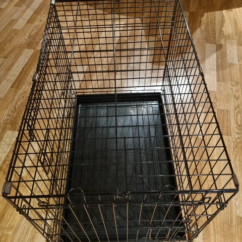 Hundebur i hvit metall med målene 70x50x60 cm. Buret har 2 dører som kan åpnes for enkel tilgang. Egnet for bruk til hunder ol. som trenger et trygt og avgrenset område.