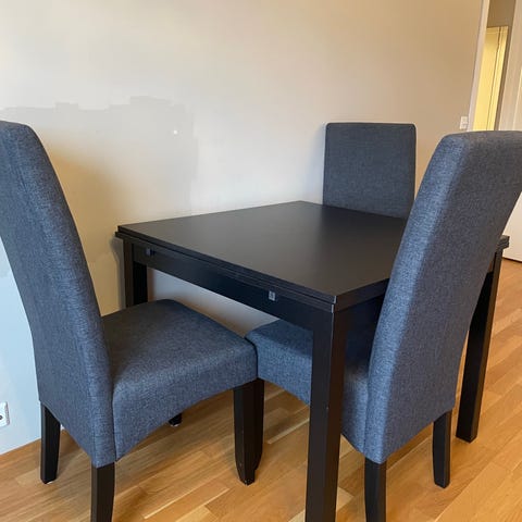 Bord og tre spisestoler selges. Pent brukt og i god stand. Kan kjøpes samlet eller hver for seg. Pris etter avtale. Må hentes på Manglerud.