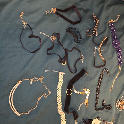 Utvalg av dame smykker i forskjellig materiale, inkludert ringer, armbånd og kjeder. Produktene varierer i design og farge, og egner seg for ulike anledninger og stiler. Bon Dep smykkene er gullbelagt men må pusses! 🩵