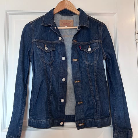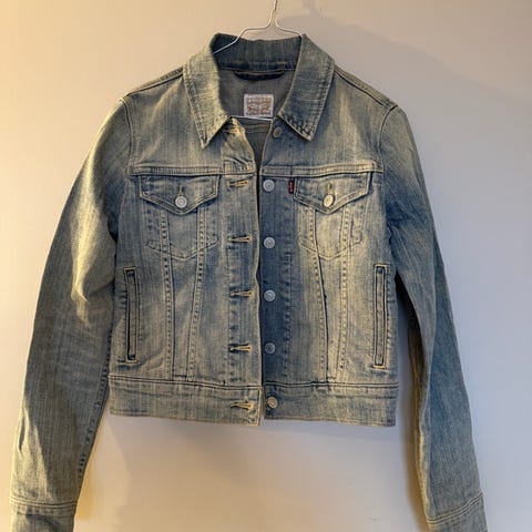 Selger en pent brukt Levi's denim jakke i størrelse L. Jakken er liten i størrelsen og passer meg som bruker størrelse Small/Medium til vanlig. Jakken er vasket og derfor blitt litt stiv, men går seg til ved bruk.