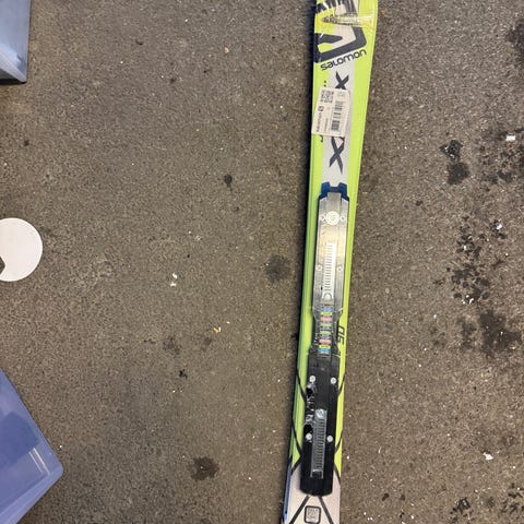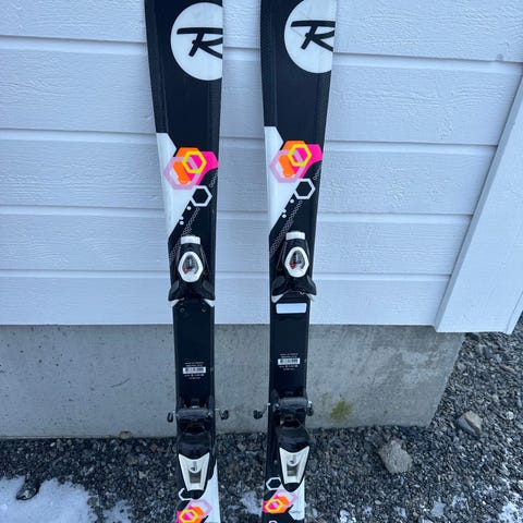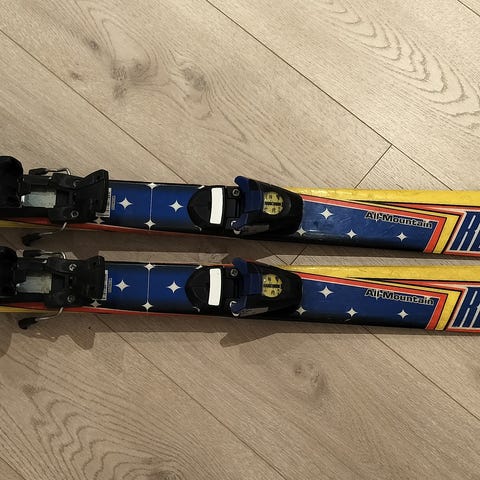 Rossignol barneski med en lengde på 92 cm. Skiene har bindinger av typen Look.