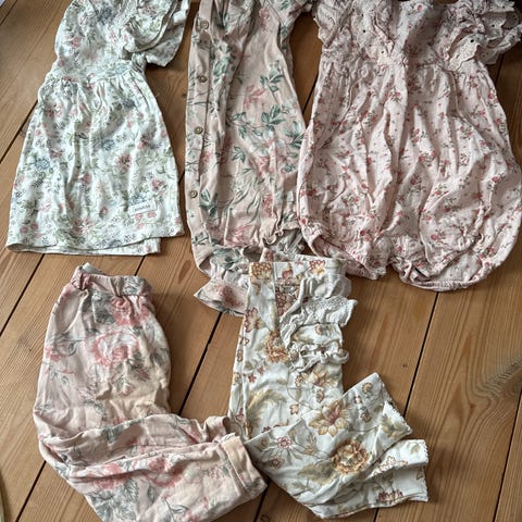 Selger pent brukte klær fra Newbie til jente i str. 80. Klespakke inneholder 4 kjoler, 2 bodye, 1 bluse og 1 blusetopp.