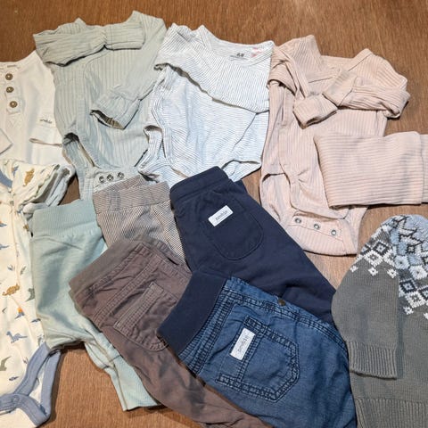 8 stk pysjamas til baby i str 56, med unntak av de to grønne fra KappAhl som er str 62. Pent brukt, fra H&M og Reflex. 50kr pr pysj eller 300kr samlet for hele.