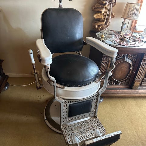 Jeg selger 2 unike antikk frisørstoler merket Theo - A -Cochs
