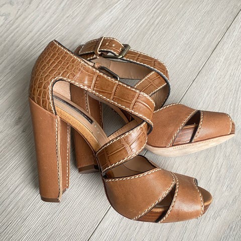 Brune sandaler med høye hæler fra Lorenzo i str. 39.