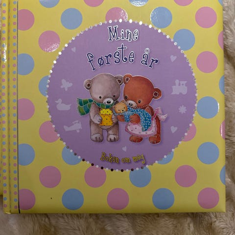 Mamma og pappa Mine første år Bok om meg med fargerik illustrasjon og plass til å fylle ut personlige opplysninger og minner fra barnets første år.