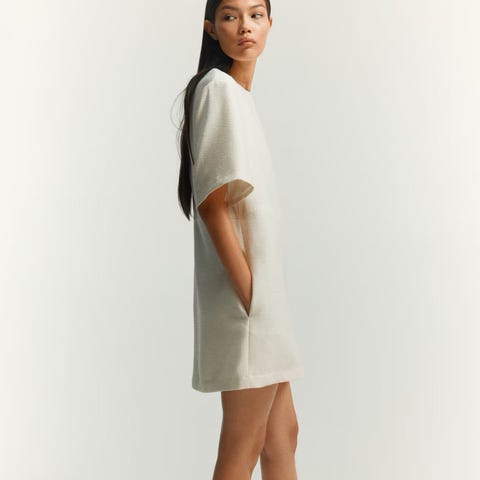 Pent brukt dobbltspent blazerkjole fra H&M i sort selges. Flatterende passform med knepping og knytebelte. Selger også tilsvarende i kremfarget. Størrelse XXL.