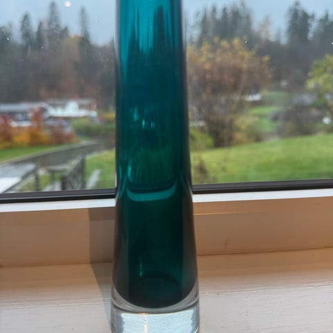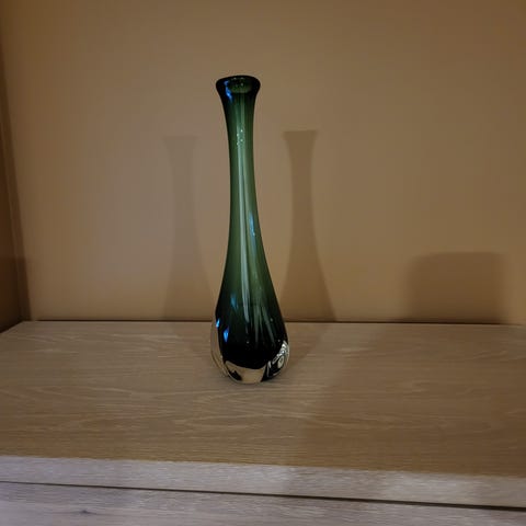 Elegant svart glassvase som er grønn innvendig.