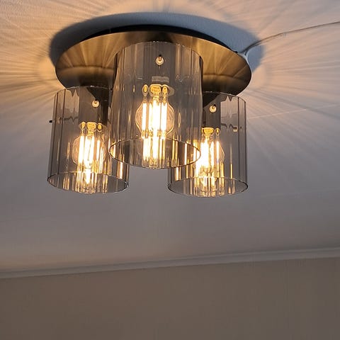 Pen sotet taklampe. To år gammel. Henger nå 50 cm fra taket. Ca 30 cm i diameter. Vi selger den fordi vi synes den dessverre gir litt lite lys, men kjøpte den fordi vi synes den var fin.