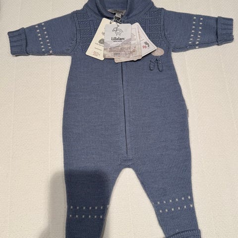 Lillelam barnedrakt i ull, størrelse 62, farge beige, unisex. Plagget er laget av ullmateriale og passer for små barn i denne størrelsen. Designet er nøytralt og egnet for begge kjønn.