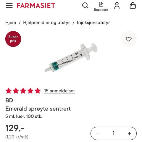 BD Emerald sprøyte med en kapasitet på 10 ml. Sprøytene er sterile og har Luer Slip (6%) kobling. CE-merket i henhold til medisinske standarder. 5 stk 15 kr, 10 stk 20 kr