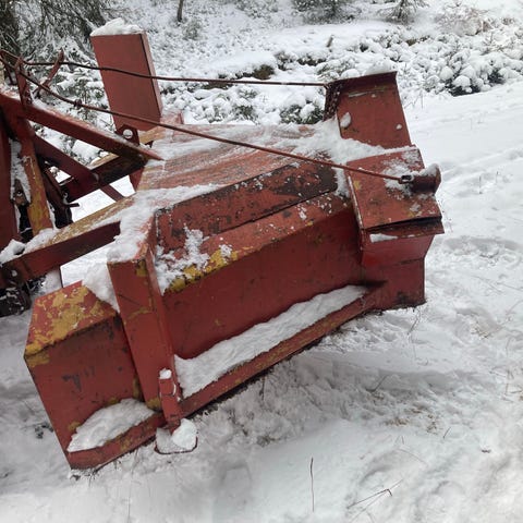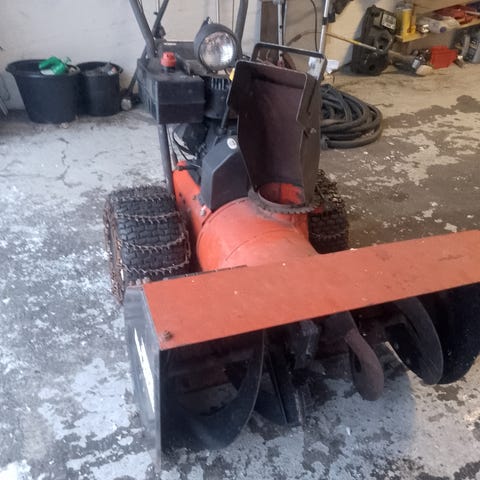 Sikkerhetsdeksel over utkastet er fjernet av tidligere eier for å lette opprensking når våt snø pakker seg. Den bør derfor ikke brukes av barn/unge uten tilsyn. Vi har brukt denne til små arealer foran dører og porter i kombinasjon med traktorfres og den har således gått svært få timer i mitt eie. Kun en tidligere eier. Jeg vet ikke alder, men tipper ca. 10 år gammel. Selges grunnet overgang til ATV med snøskjær.