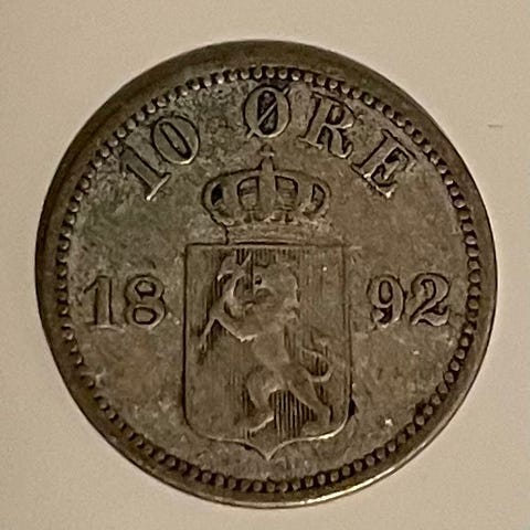 Norge 5 øre mynt fra 1945 i jern. Dette er en 5 øre med lite opplag. Kun 408 000 stk.