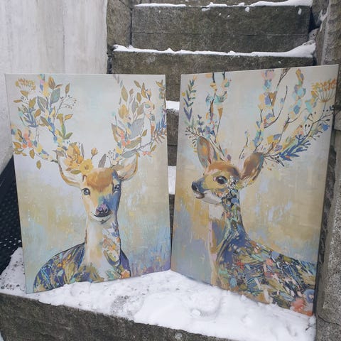 Pjätteryd bilde med fargerikt reinsdyrmotiv. Mål: 50x70 cm. Pakke med to bilder. Helt uåpnet.