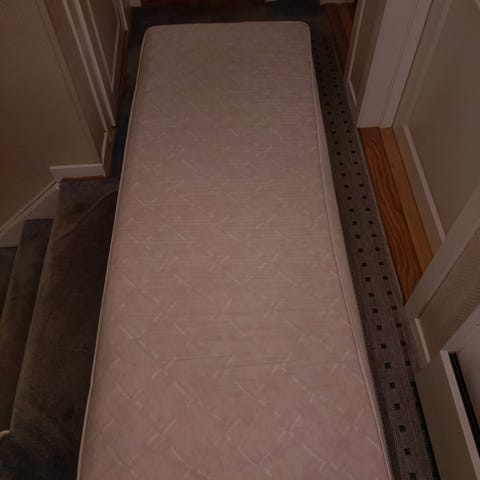 Overmadrass brukt på sovesofa selges grunnet behov for nytt barnerom og sovesofaen ryker. Madrassen har kun vært brukt sammen med tisselaken som beskyttelse og er tilsynelatende "ubrukt".