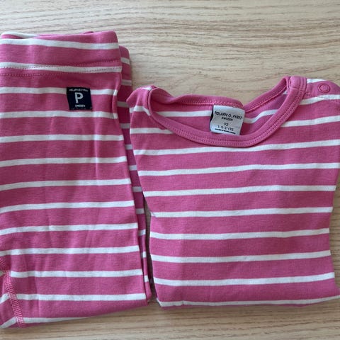 Polarn O. Pyret Jente pyjamas i størrelse122/ 128, laget av bomull. Pyjamasen har rosa farge med stripete mønster.