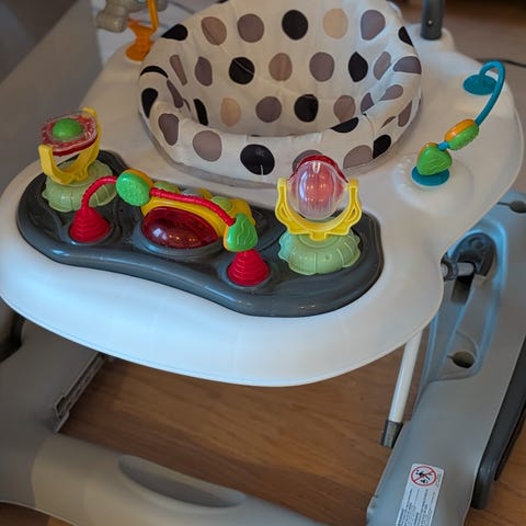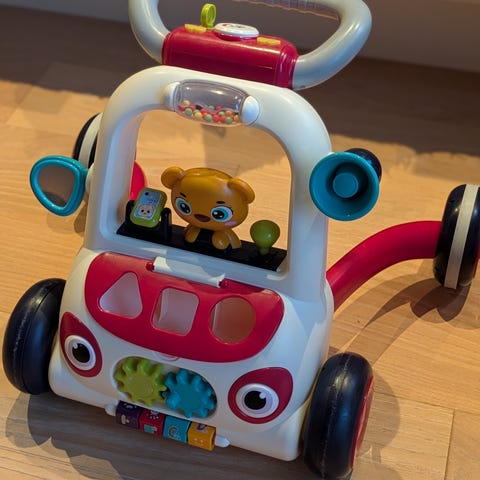 Pent brukt gåstol fra Beemoo, ingen bruksmerker. Ikke så mye brukt da ettåringen har begynt å gå. Den har mange aktiviteter og knapper med musikk og lyd. Fargen er i sand. Kjøpt ny av meg for 999,-
