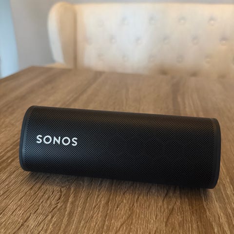 Sonos Roam er en ultra-bærbar trådløs høyttaler med både Wi-Fi og Bluetooth, som lar deg spille musikk fra telefonen, nettbrett eller datamaskin hvor som helst. Den gir deg Sonos-økosystemet i en kompakt form – samtidig robust nok til utebruk.