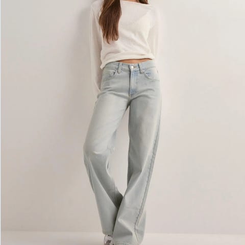 Elastisk , smal nederst m "bat" ermer, høyhalset som kan rulles ned. Ribbestrikket v erm.