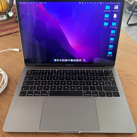 Dette er utgaven med 512GB SSD (dobbelt så mye som standard). Batteriet har fortsatt hele 92% makskapasitet. Lading har vært begrenset til 80% for å spare batteriet, noe som har bevart helsen eksepsjonelt godt. Her får du en maskin som oppleves som ny.