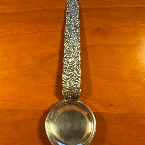 Laget i 925S sølv. Smykket har et unikt design med flere detaljer på håndtaket. 24gr.