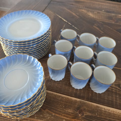 4stk asjetter, 4stk skåler, 2 kopper og 3 eggeglass.