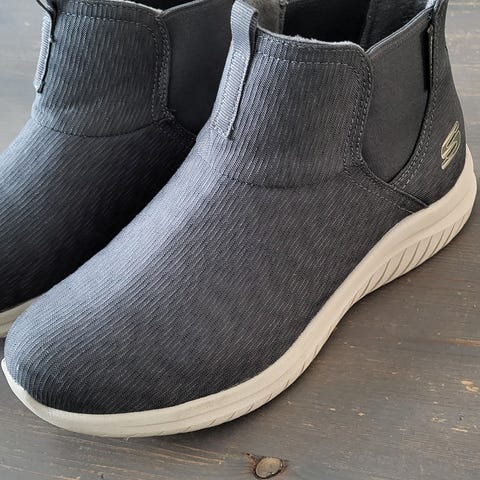 Skechers vinterstøvler i str 39, modell Easy Going High Zip, farge svart. Semsket skinn, memory foam innersåle og god yttersåle. Skoen har relaxed fit - betyr ekstra romslig ved forfoten både i høyden og bredden. Skoene er impregnert før bruk. Kun brukt en gang og ristet godt av de etterpå (ikke vasket for å ødelegge impregneringen). Selges da de dessverre ble for store til min fot.