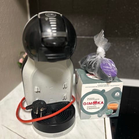 Dolce Gusto kapselkaffemaskin i svart farge. Maskinen bruker kapsler for å lage kaffe og er designet for hjemmebruk.