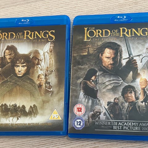 The Lord of the Rings Blu-ray The Motion Picture Trilogy inneholder tre filmer: The Fellowship of the Ring, The Two Towers og The Return of the King. Blu-ray-utgaven tilbyr høyoppløst bilde og lyd, og kommer i en samlet pakke med ekstra materiale. Passer for samlere og fans av filmserien.