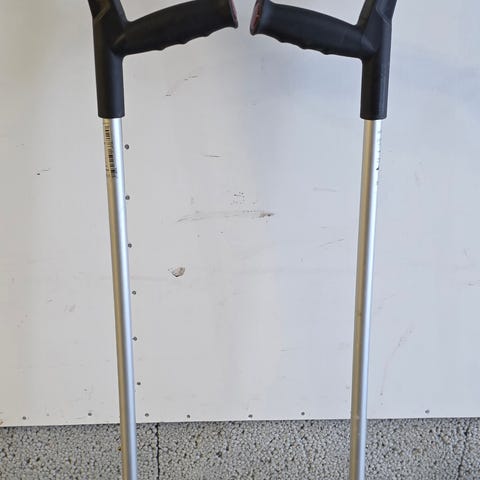 Krykker selges. Farge: svart og sølv. Røde reflekser.