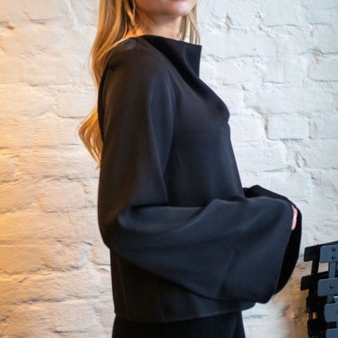 Istana heavy sateen bluse fra Neo Noir. Istana Heavy Sateen Blouse Black fra Neo Noir er en elegant bluse i sort farge. Denne luksuriøse blusen har lange, vide ermer og en flatterende V-hals. Brukt en gang, fremstår som ny, størrelse 38, 97% polyester, 3% elastan
