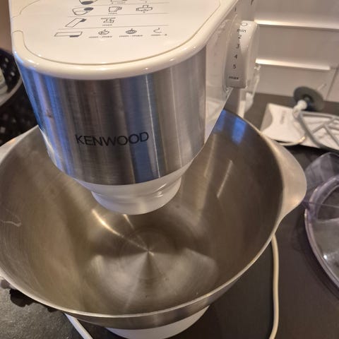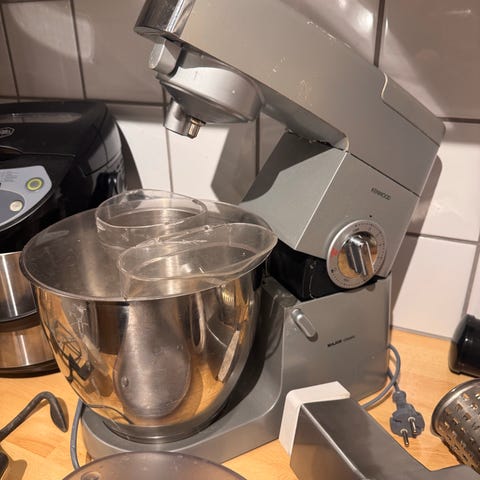 Kenwood Major Classic kjøkkenmaskin i grå farge. Maskinen leveres med visp, eltekrok, og blandekrok. Inkluderer bolle og deksel i plast. Egnet for baking og matlaging med flere funksjoner. Blandekroken sitter fast i maskinen, men noen med riktig verktøy klarer sikkert å få den ut igjen😅 Fungerer ellers fint☺️