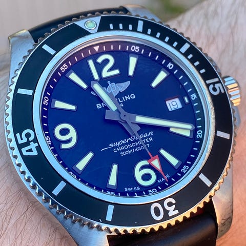Selger en ekstremt lekker Breitling Superocean 2025 modell Automatic, en perfekt kombinasjon av sporty dykkeklokke og elegant hverdagsklokke. Denne modellen sitter like bra til dress som til t-skjorte.