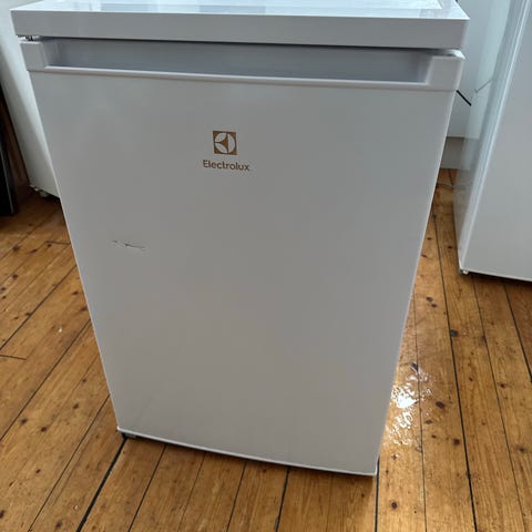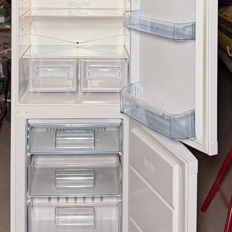 Logik kombiskap i hvit farge. Kjøleskap med fryser i ett, egnet for oppbevaring av mat og drikke. Har en kompakt størrelse som passer til mindre kjøkken eller områder med begrenset plass. Strøken kjøleskap til salgs.