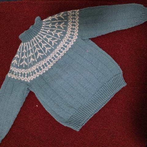 Ny hjemmestrikket grønn ullgenser str 2 år