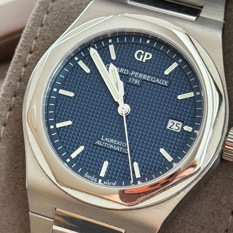 Noen hairlines som lett forsvinner med litt polering og en liten skramme på urkas. Klokken er kjøpt hos urmaker i 2021 og følger med kvittering og sertifikat.