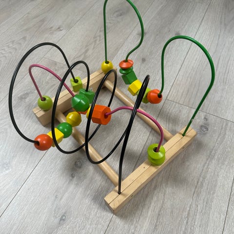 Baby Born barnleketøy i tre med flere fargede perler som kan flyttes langs bøyde tråder. Egnet for barn, laget i tremateriale, designet for å stimulere motoriske ferdigheter og koordinasjon. 150,-