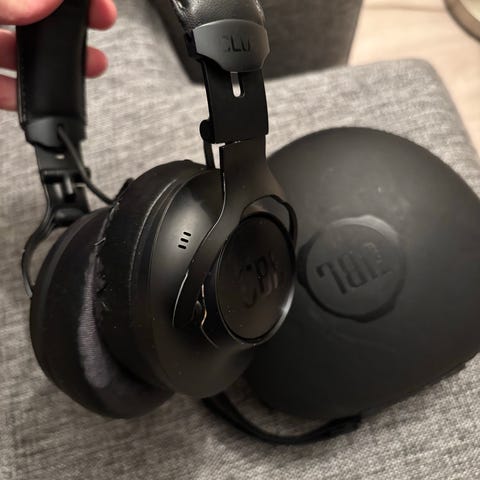 Selger min hode tlf type Soundcore støydempende headset (kjøpt juli/25 hos Kjells Company). Fungerer optimalt og kabel & boks medfølger. Bruker Bluetooth og ANC (active noice cancelling).