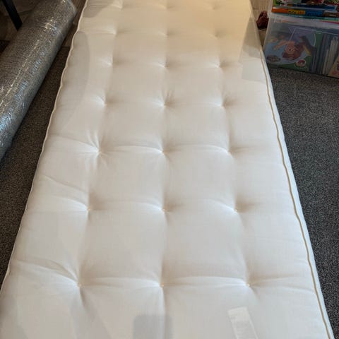 Dette brukes under annet laken og har Strikkfeste i alle 4 hjørner. Praktisk. Brukt til madrass med 75-90 cm bredde.