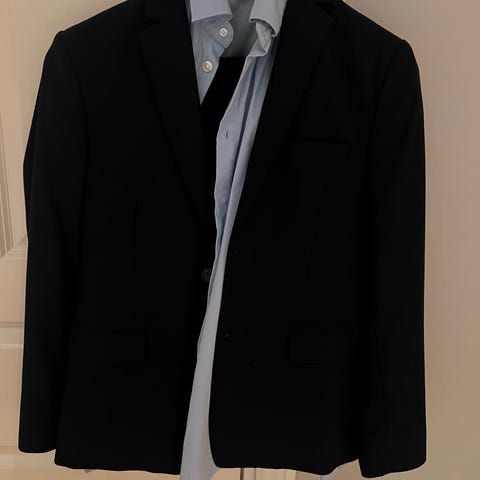 Klassisk dress med knapper i front og nederst på ermene. Dressjakken har en brystlomme og to lommer foran, samt en dobbel splitt bak. Tynt fôr.
