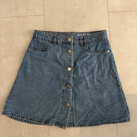 Noisy May denimskjørt i hvit farge, størrelse S. Laget av denimmateriale. Skjørtet har knappelukking foran og lommer både foran og bak.